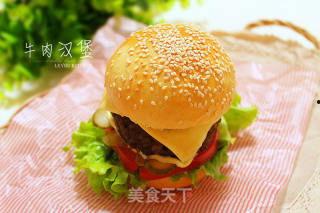 4. 将汉堡包的顶部盖上,一个美味的牛肉汉堡就大功告成了!
